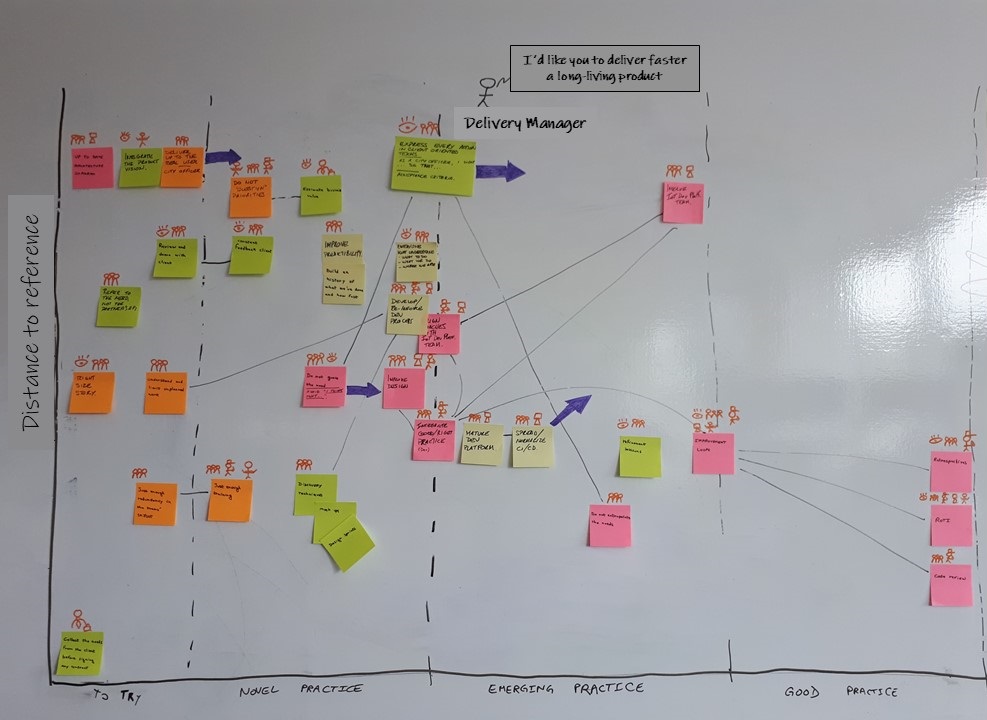 Then you can draw some links between the practices if you wish. These links can represent a dependency, a logical connection, and so on.